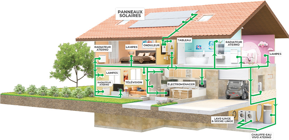 (1) En fonction de votre installation et la région dans laquelle vous habitez, votre dispositif peut couvrir de 40 à 70 % de vos besoins annuels. Votre budget énergétique diminue donc proportionnellement.